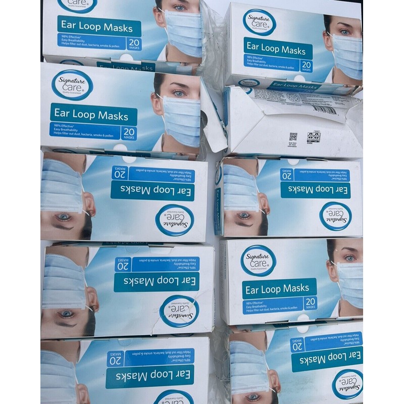 Signature Select Care First Aid Ear Loop Masks 20 Each Count = 200 DAMAGE Lot