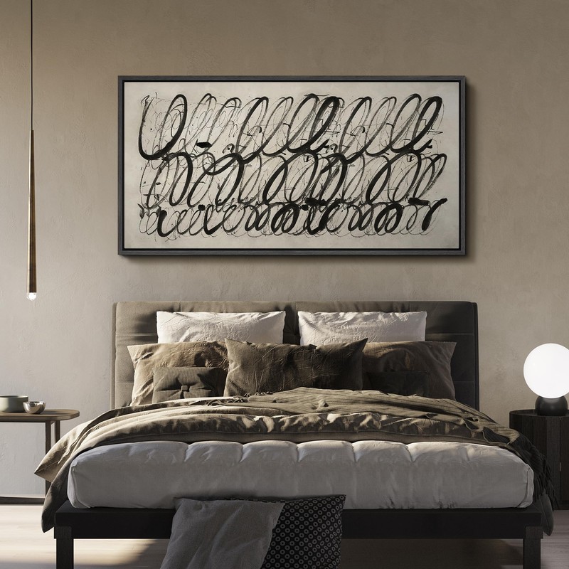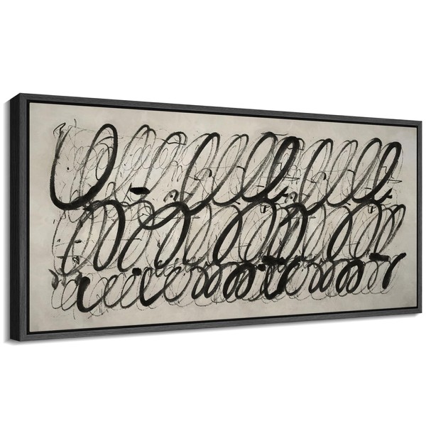 SIGNFORD Extra Large Framed Canvas Abstract Black Brush Script Pattern Bold Calligraphy Illustrations Modern Art Calm Warm for Living Room, Bedroom, Office - 60"x30"