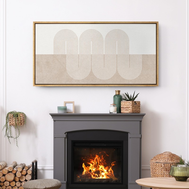 SIGNFORD Extra Large Framed Canvas Print Wall Art Minimalist Line Art Curved Line Pattern in Neutral Beige Tones Geometric Illustrations Modern Art Calm Warm for Living Room Bedroom Office - 60"x30"