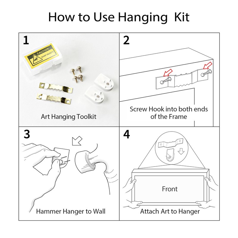 • [Easy to Hang] Every artwork comes with a complete hanging kit. For optimal balance, attach the hook to the side. We suggest two people for a simple and precise installation, ensuring the art hangs securely and steadily.
