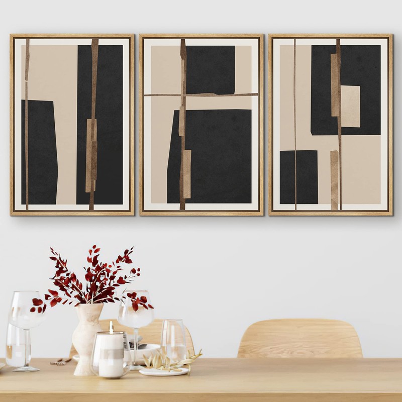 SIGNFORD Framed Canvas Print Wall Art Set Mid-Century Black Polygon Squares Abstract Shapes Illustrations Modern Art Bohemian Nordic Relax/Calm for Living Room, Bedroom, Office - 24"x36"x3 Natural