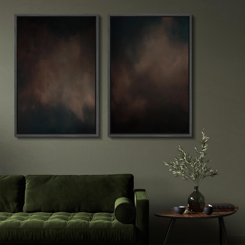 SIGNFORD Framed Canvas Print Wall Art Set Moody Dark Abstract Earth Tones Illustration Modern Art Decorative Nordic Nature for Living Room, Bedroom, Office - 16"x24"x2 BLACK