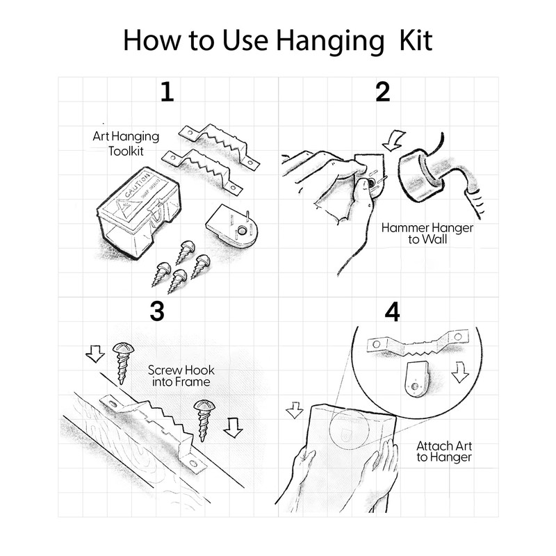 Our artwork comes with different sizing options. Measure your wall, then pick the according size. Hanging is made simple with our complimentary hanging accessory toolkit.