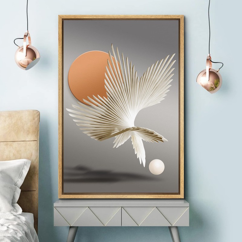 SIGNFORD Framed Canvas Print Wall Art Surreal Plant Leaf 3D Geometric Polygons Abstract Shapes Digital Art Modern Art Decorative Sci-Fi & Fantasy for Living Room, Bedroom, Office - 24"x36" Natural
