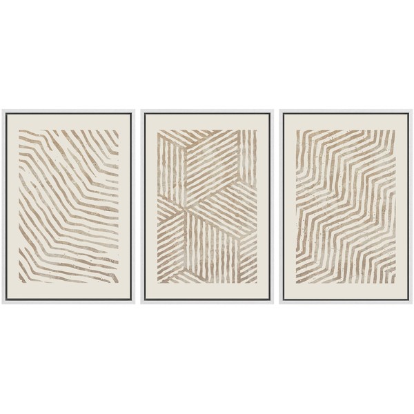 SIGNLEADER Framed Canvas Print Wall Art Set 3D Geometric Pattern Wave Collage Abstract Shapes Illustrations Modern Art Decorative Contemporary for Living Room, Bedroom, Office - 16"x24"x3 WHITE