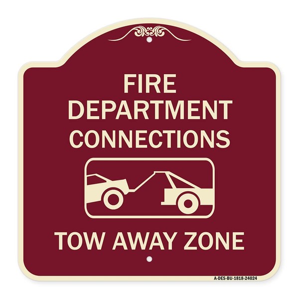 SignMission Designer Series Sign - Fire Department Connection, Tow Away Zone (with Graphic) | Burgundy 18" X 18" Heavy-Gauge Aluminum Architectural Sign | Made in The USA