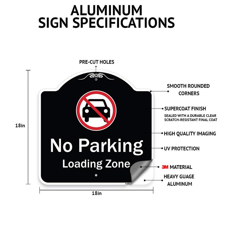 SignMission Designer Series Sign - No Parking Valet Parking Only (with Left Arrow) (with Car Tow Graphic) | Black & White 18" X 18" Heavy-Gauge Aluminum Architectural Sign | Made in The USA