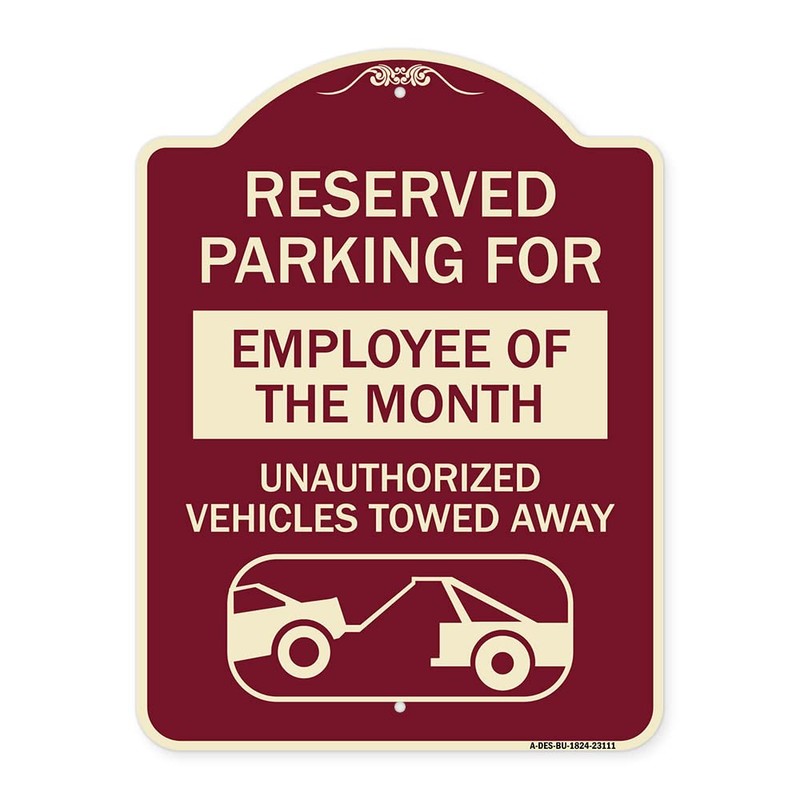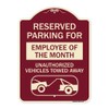 SignMission Designer Series Sign - Reserved Parking for Employee of The Month - Unauthorized Vehicles Towed Away | Burgundy 18" x 24" Heavy-Gauge Aluminum Architectural Sign | Made in The USA