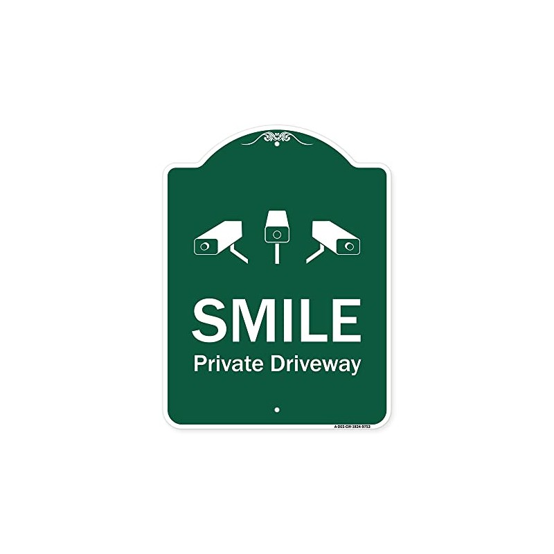 SignMission Designer Series Sign - Smile Private Driveway with Video Surveillance Camera Graphics | Green & White 18" x 24" Heavy-Gauge Aluminum Architectural Sign | Made in The USA