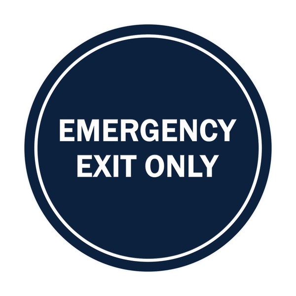Signs ByLITA Circle Emergency Exit Only Sign (Navy Blue/White) - Small 1 Pack
