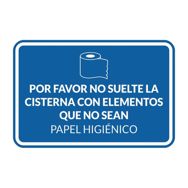 Signs ByLITA Classic Framed Por favor no suelte la cisterna con elementos que no sean papel higiénico Door or Wall Sign | Spanish Restroom Maintenance Sign (Blue) - Small