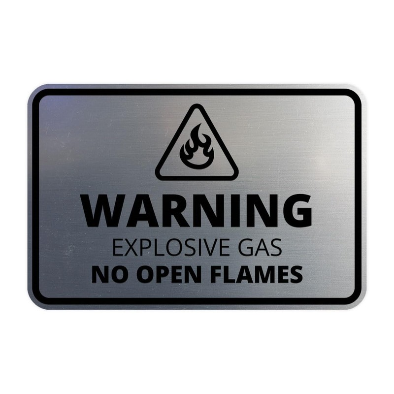 Signs ByLITA Classic Framed Warning: Explosive Gas - No Open Flames Door or Wall Sign Easy Installation | Health And Safety | Building And Warning Sign (Brushed Silver) - Small