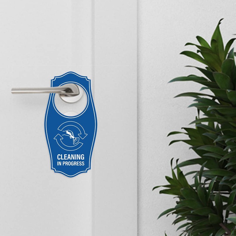 Signs ByLITA Cleaning in Progress Door Hanger - Red, 4" x 8" (3 Pack)