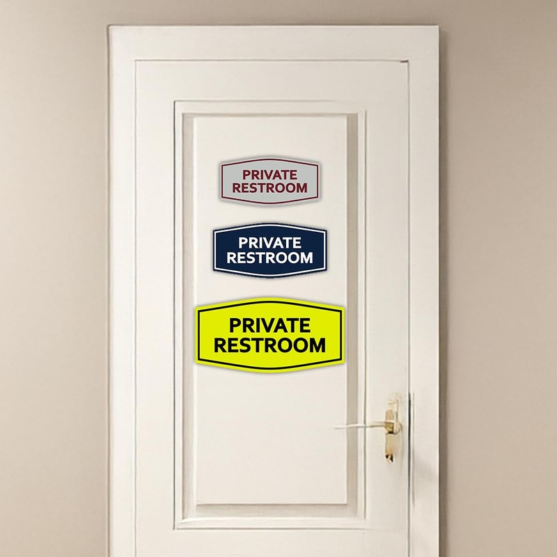 Our Private Restroom Door/Wall sign can be attached to the door, wall or window of your home or business. The sign has been laser engraved so the words are all etched into the plastic. Comes in multiple colors.