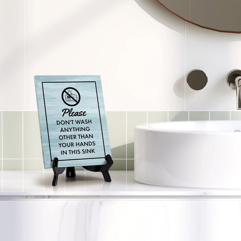 Signs ByLITA Please Don't Wash Anything Other Than Your Hands In This Sink Table Sign with Acrylic Stand (6x8“)
