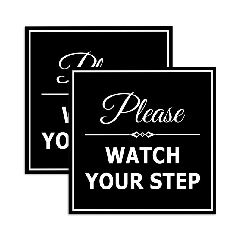 Signs ByLITA Square Classy Please Watch Your Step Sign | Safety Sign with Easy Installation (Black) - Medium 2 Pack
