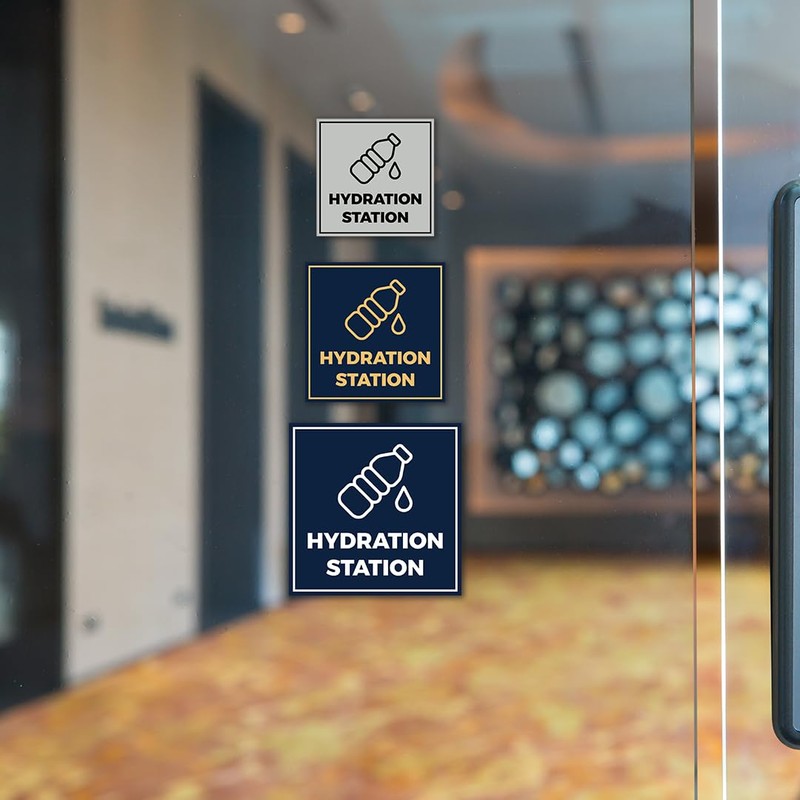 Signs ByLITA Square Hydration Station Door or Wall Sign | Public Signage (Brushed Silver) - Large