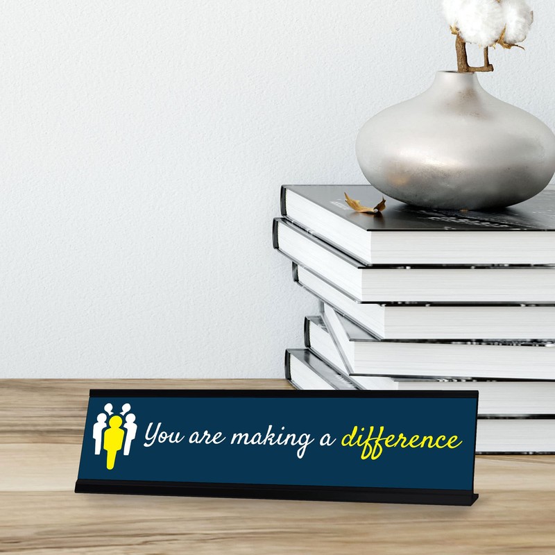 Signs ByLITA You are making a difference, Black Frame, Desk Sign (2 x 8")