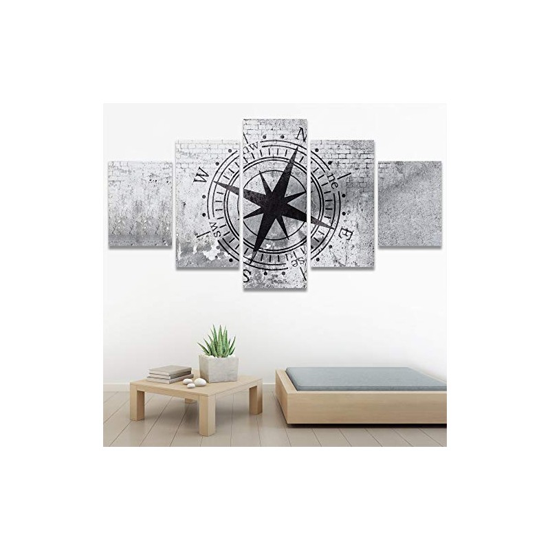 SIGNWIN 5 Panel Canvas Wall Art Compass on Shabby Wall Abstract Plants Illustrations Impressionism Modern Panoramic Relax/Calm Multicolor for Living Room, Bedroom, Office - 60"x32"
