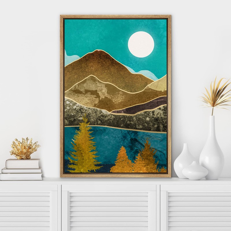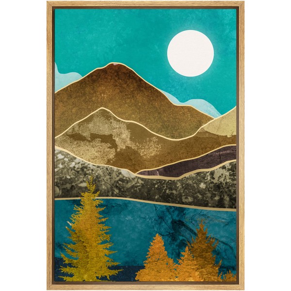 SIGNWIN Framed Canvas Print Wall Art Marble Golden Autumn Mountain Forest Landscape Nature Wilderness Illustrations Modern Art Farmhouse/Country for Living Room, Bedroom, Office - 16"x24" Natural
