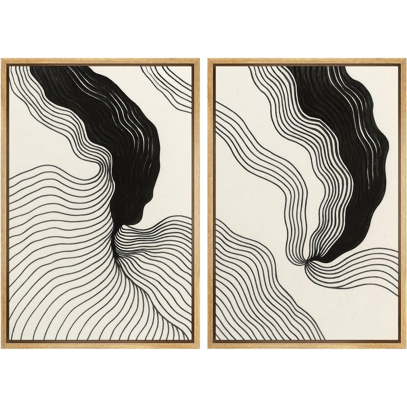 SIGNWIN Framed Canvas Print Wall Art Set Abstract Black Line Flow Minimalist Modern Art Minimal Boho Relax/Calm for Living Room, Bedroom, Office - 24"x36"x2 Natural