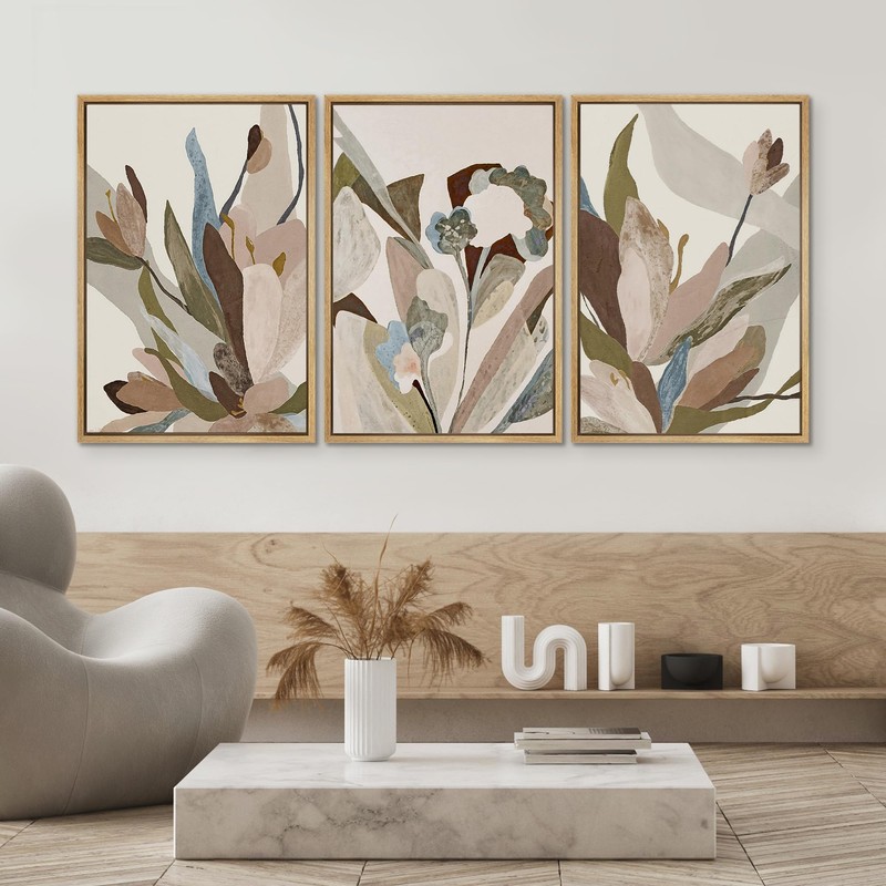 SIGNWIN Framed Canvas Print Wall Art Set Botanical Abstract Earthy Neutral Floral Illustrations Modern Art Decorative Boho Relax/Zen Nordic for Living Room, Bedroom, Office - 24"x36"x3 Natural