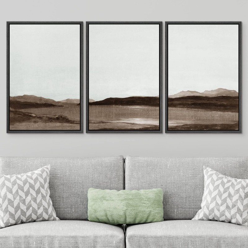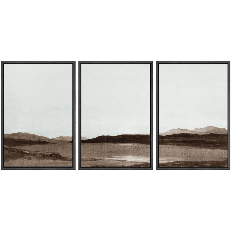 SIGNWIN Framed Canvas Print Wall Art Set Brown Minimal Desert Valley Landscape Nature Abstract Illustrations Modern Art Decorative Nordic Rustic for Living Room, Bedroom, Office - 16"x24"x3 Black