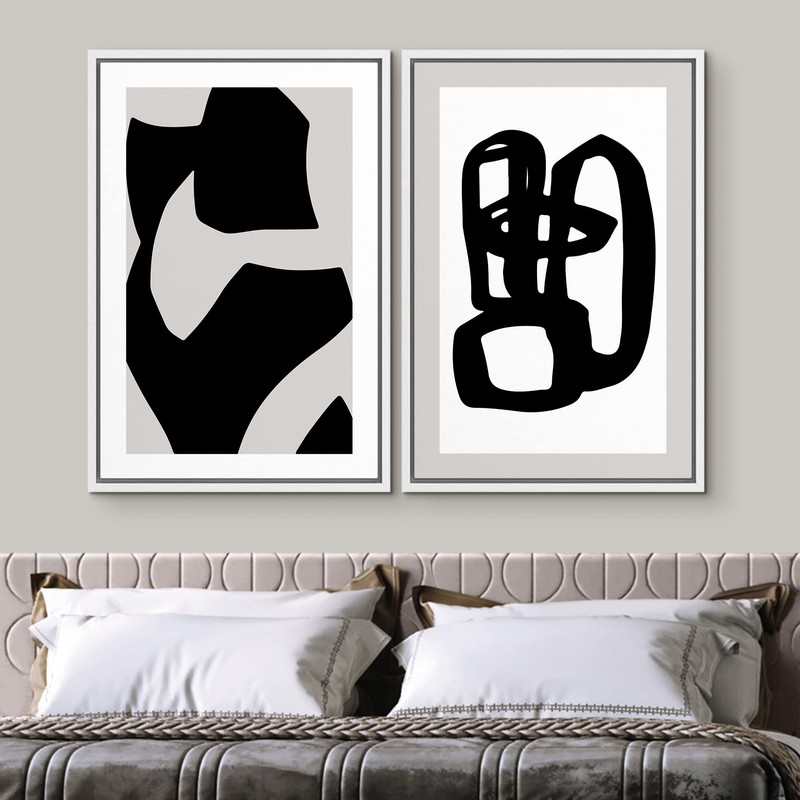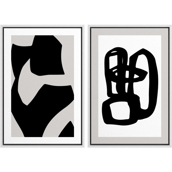 SIGNWIN Framed Canvas Print Wall Art Set Geometric Black Paint Stroke Circles Abstract Shapes Illustrations Modern Art Decorative Contemporary for Living Room, Bedroom, Office - 16"x24"x2 White