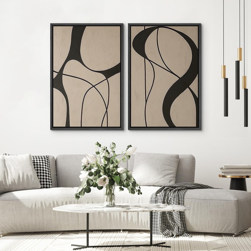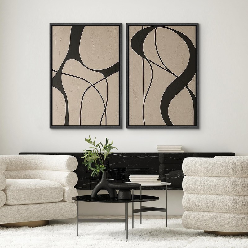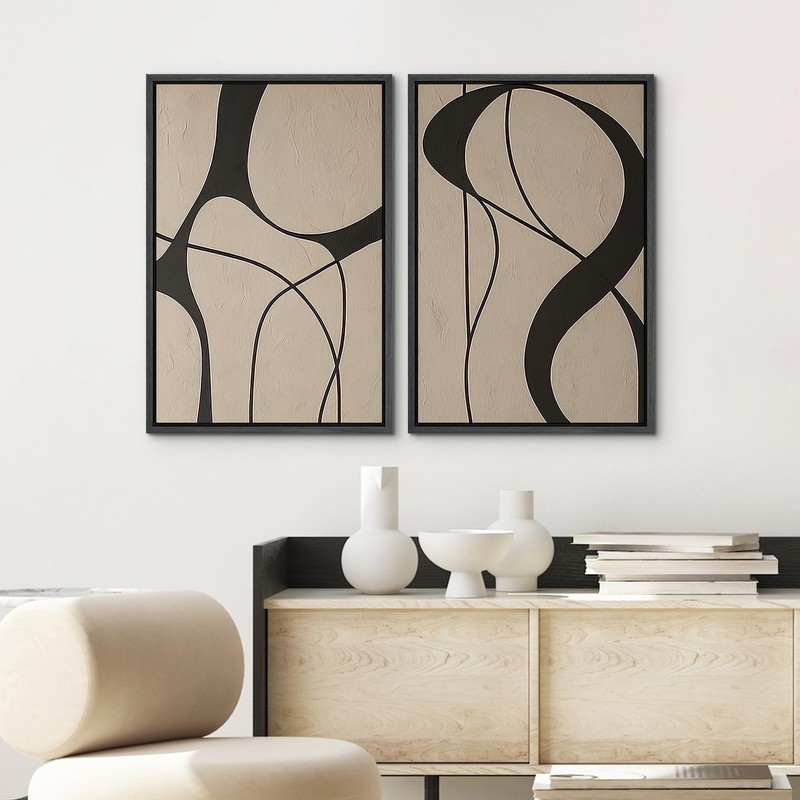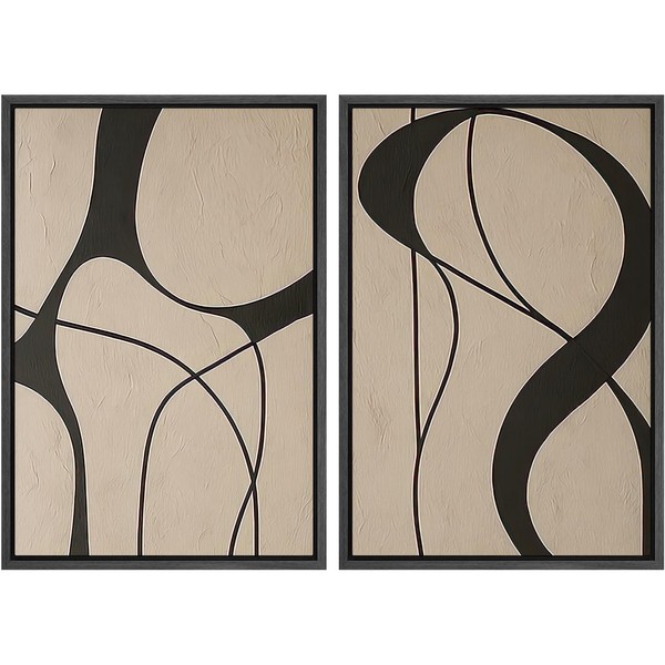 SIGNWIN Framed Canvas Print Wall Art Set Neutral Beige and Black Abstract Line Modern Minimalist Modern Art Minimal Boho Relax/Calm for Living Room, Bedroom, Office - 24"x36"x2 Black
