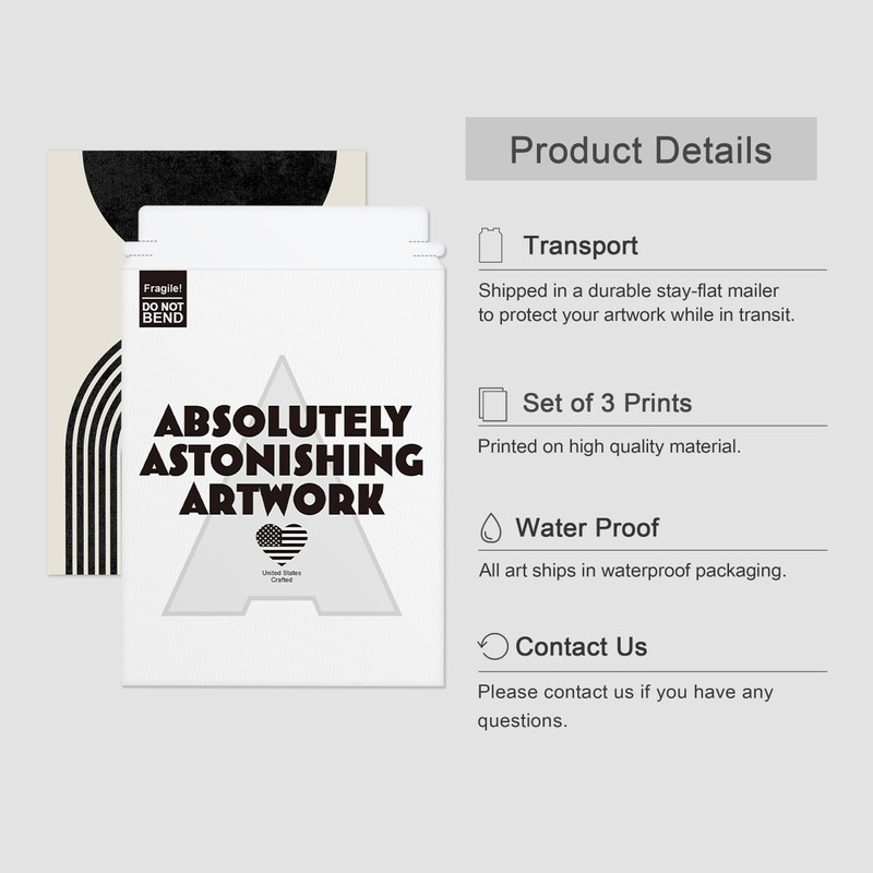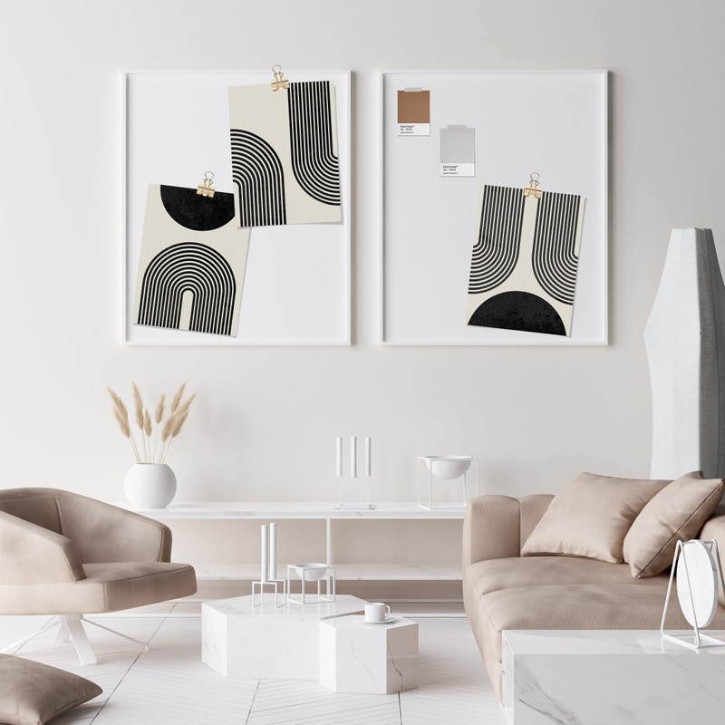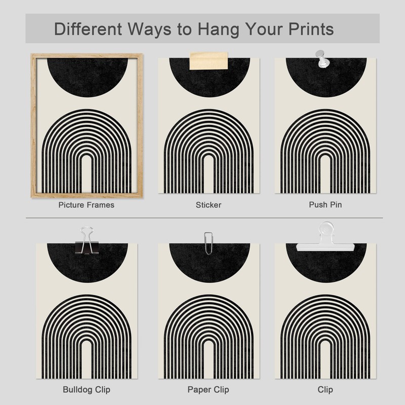 SIGNWIN Poster Set Mid-Century Black & White Polygons & Shapes Abstract Geometric Illustrations Modern Art Pop Art Minimalism Multicolor Nature Wilderness for Bedroom - 8"x10"x 3