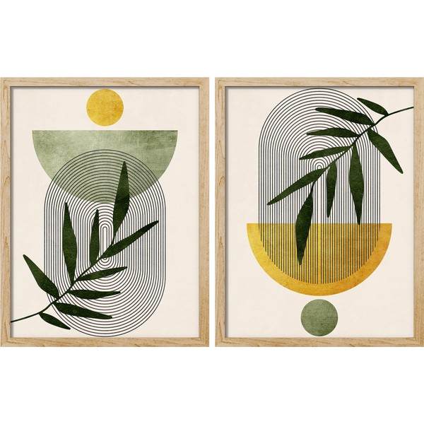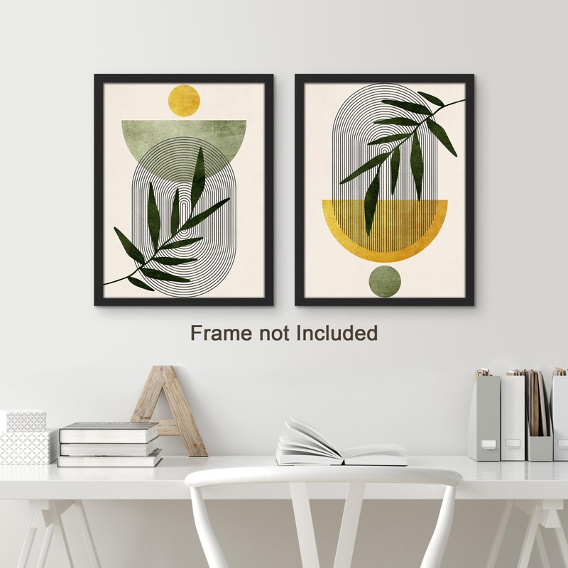 SIGNWIN Poster Set Mid-Century Green Desert Plant Palm Leaf Polygons Abstract Geometric Illustrations Modern Art Pop Art Minimalism Multicolor Nature Wilderness for Bedroom - 8"x10"x 2