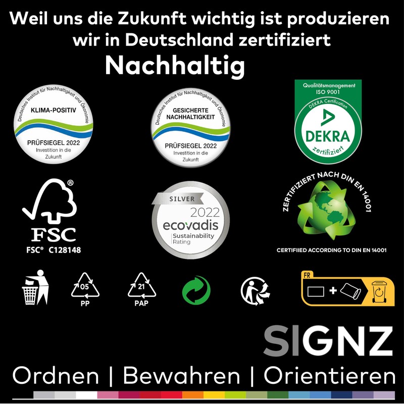 SIGNZ Document Wallet with Flap, for Filing, DIN A4, Side Open, Extra Strong 120 µm, Grained, Pack of 10, CO2-Neutral, Made in Germany (A4 with Flap)