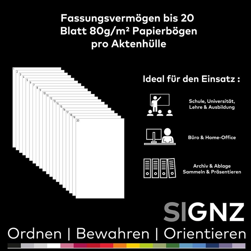 SIGNZ Document Wallets (DIN A5, Extra Strong 120 My), Grained, CO2 Neutral, Made in Germany Pack of 100