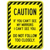Sigo Signs, Caution If You Can't See My Mirrors I Can't See You Do Not Follow Too Closely Sign, 18x24 Inches, 55 mil Thick HDPS (high Density polystyrene), Made in USA