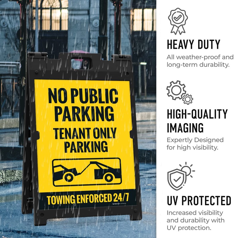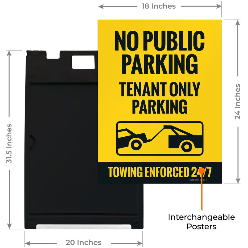 Sigo Signs, No Public Parking Tenant Only Parking Towing Enforced 24 7 Sidewalk Sign Kit, 18x24 Inches, with A Frame Stand, Made in USA