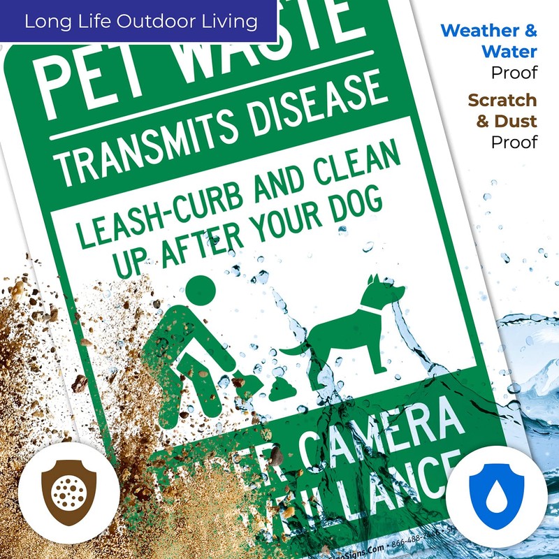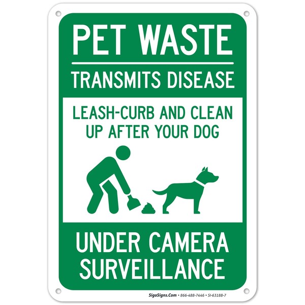 Sigo Signs Pet Waste Leash-Curb and Clean Up After Your Dog Under Camera Surveillance Sign, (SI-63188) 10x7 Inches, Rust Free .040 Aluminum, Fade Resistant, Made in USA