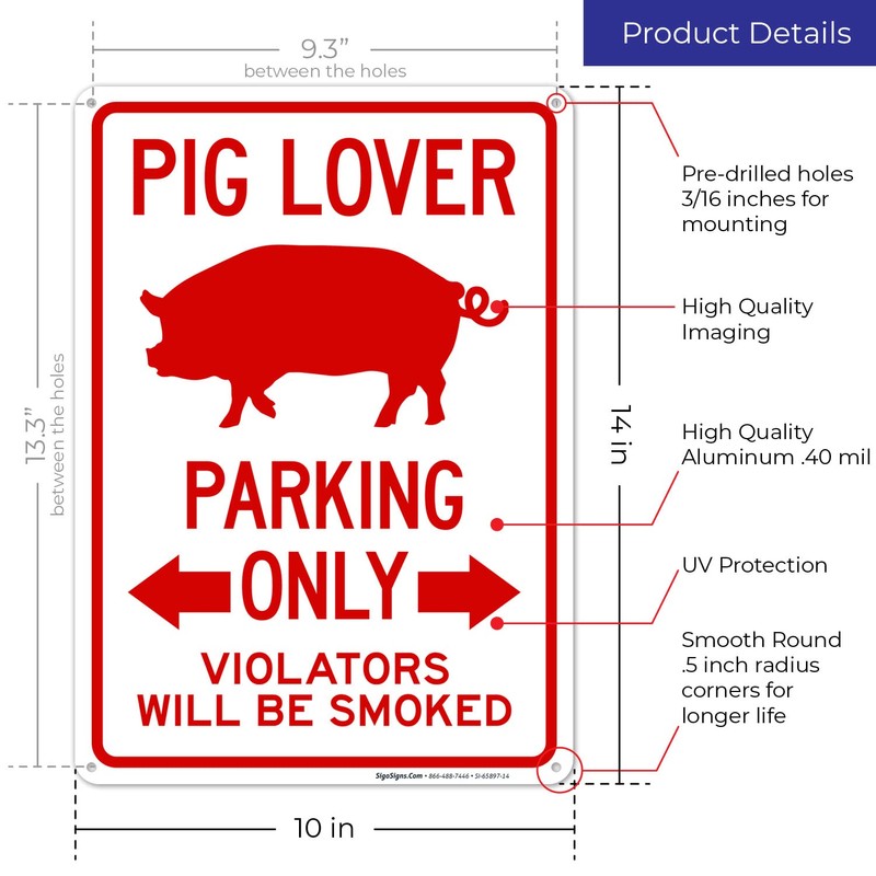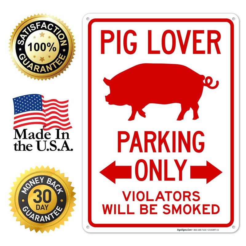 Sigo Signs, Pig Lover Parking Only Violators Will Be Smoked with Bidirectional Arrow Sign, 10x14 Inches, Rust Free .040 Aluminum, Fade Resistant, Made in USA