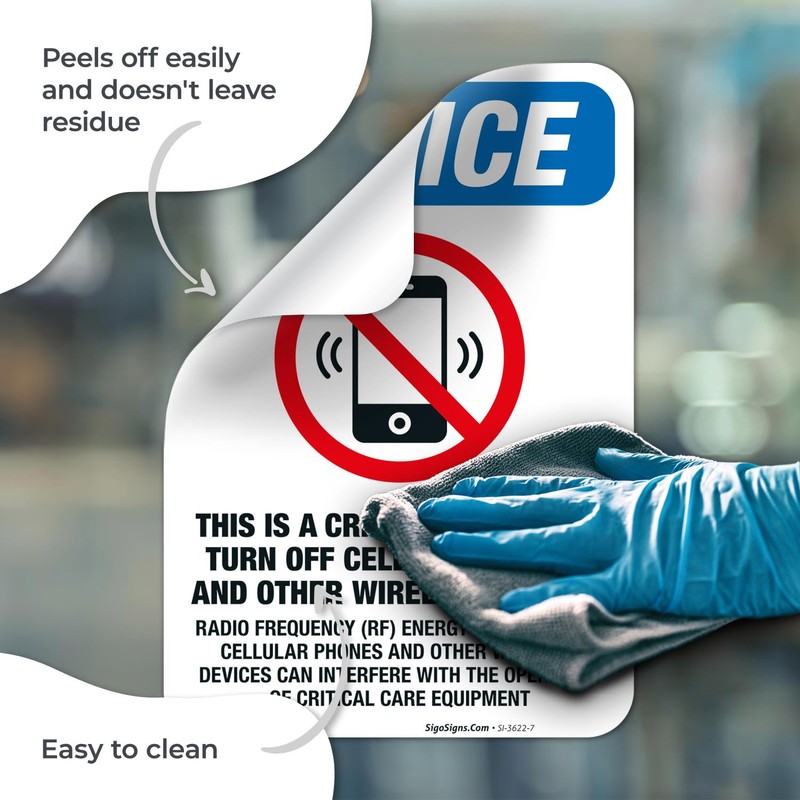 Sigo Signs, This is A Critical Care Area. Turn Off All Wireless Devices Sign, OSHA Notice Sign, 10x7 Inches, 4 Mil Vinyl Decal Stickers Weather Resistant Long Lasting UV Protected, Made in USA