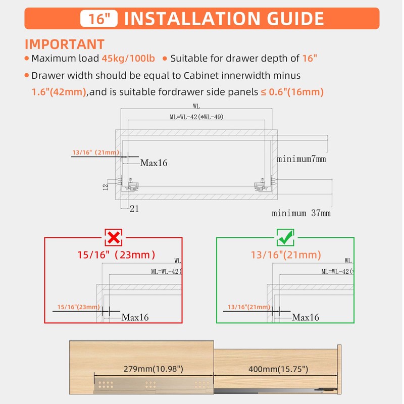 - Hidden bottom installation:Make your drawer making it cleaner and more beautiful,the slides hide away with ease,Mounting screws included.