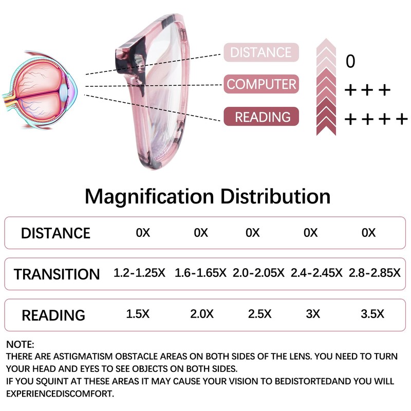 Progressive Multifocus Design: No need to change glasses, suitable for different distances, making it convenient to read content at near, intermediate, and far distances