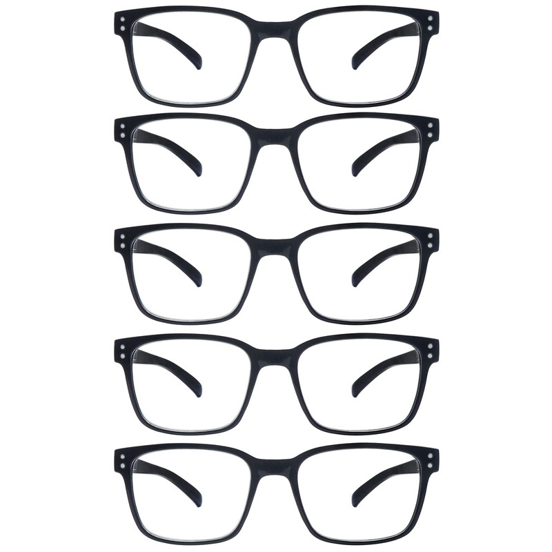 SIGVAN Blue Light Blocking Reading Glasses for Men Women Computer Spring Hinge Readers Square Frame Glasses 5 Packs (5 Black, 0.5)
