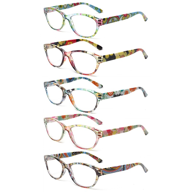 - CONVENIENT SET : 5 pairs Computer reading glasses + 5 readers soft pouch + microfiber cleaning cloth. Keep a Pair in Each of Your Favorite Reading Area.