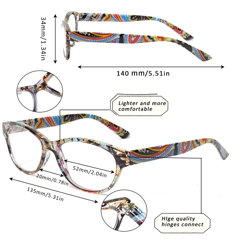 - COMFORTABLE DESIGN:Readers with spring hinge temples ensure a comfortable fit.Soft and gentle comfort, not affected by the shape and width of the face!