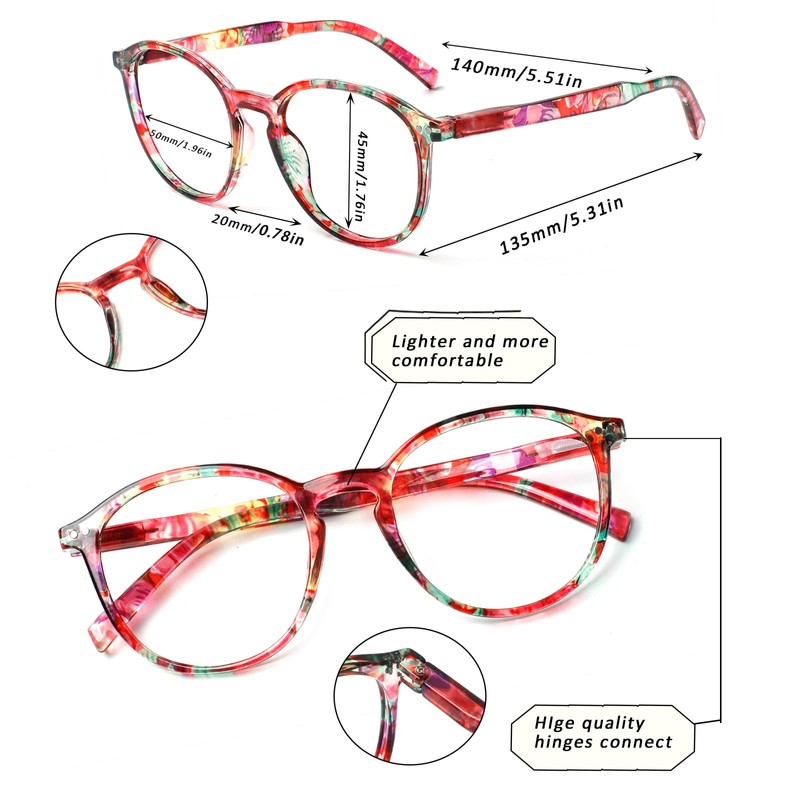 - FASHION GLASSES FRAME:Durable, lightweight, stylish Round frame design. Classic shape fashion frame reading glasses updated with a fun and colorful design for a fresh look.Multiple colors to choose from.You can optionally change to different color when you are in different occasion.