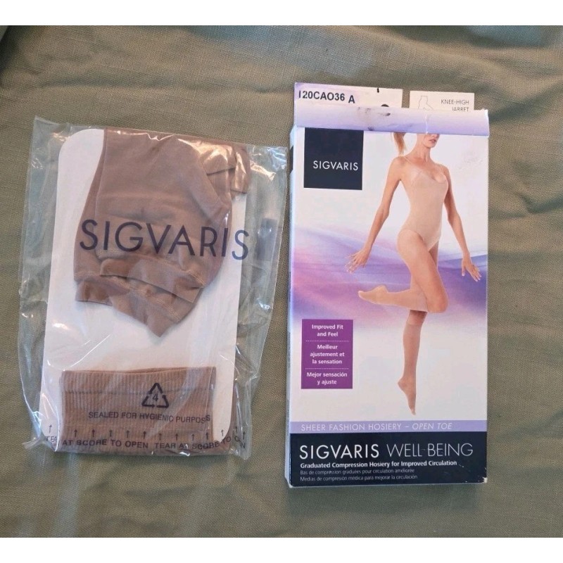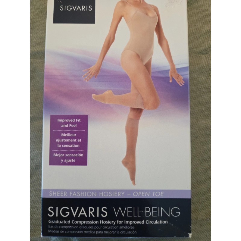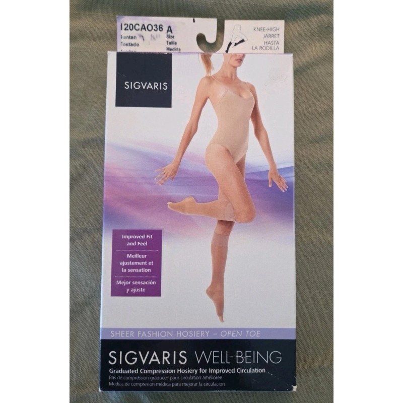 SIGVARIS WELL BEING OPEN TOE KNEE HIGH STOCKINGS 15-20 mmHg Suntan SIZE A.