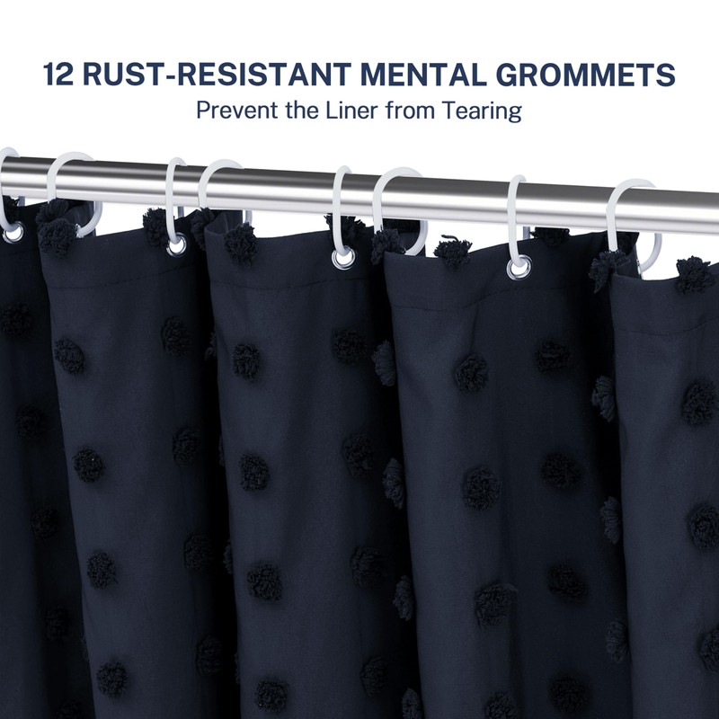 - TUFTED BATHROOM DECOR- this textured shower curtain set comes with 12 c-type hooks for easy installation. machine washable, cold and gentle, and separately. Tumble dry low. If you have any issues with our product, please don't hesitate to contact us.