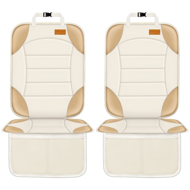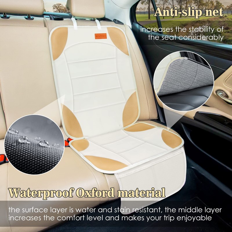 Siivton Car Seat Protector for Child Car Seat, Car Seat Cushion for Leather and Fabric Seats, 2 Mesh Pockets, Non-Slip Bottom, Waterproof Protectors for Vehicles Baby Pets (2 Pack)