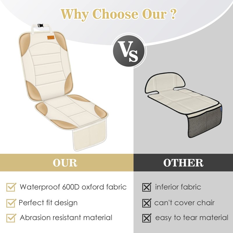 - 【Durable & Easy to Wipe Clean】This carseat seat protectors has premium quality waterproof 600D oxford fabric for a good look and super long life. And easy to clean! You can wipe up spills and dirt with a damp cloth. To ensure a longer lifespan, Machine Washing is NOT Recommended.