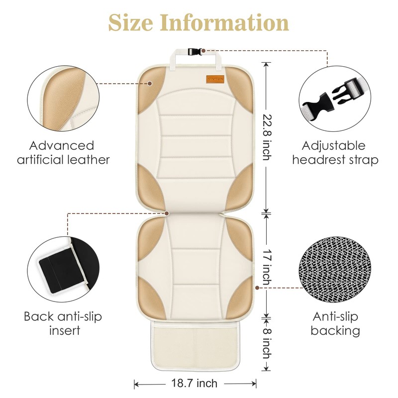 - 【Adjustable Strap & Anti-slip Design】The car seat cover has adjustable straps that securely attach the seat cover to the headrest for a perfect fit. Premium leatherette, anti-slip back insert and anti-slip backing to prevent car seat protectors from slipping off the seat. Enjoy your trip with peace of mind!