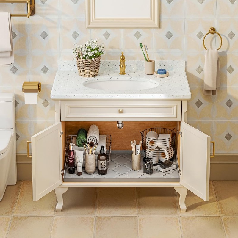 SIKADEER SIKADEER 22" x 19" Under Sink Mats for Kitchen Waterproof, Silicone Under Sink Liner Bathroom Cabinet Shelf Protector Kitchen Organizer, Raised Edge Degin Great for Cat Little Mat Boot Tray
